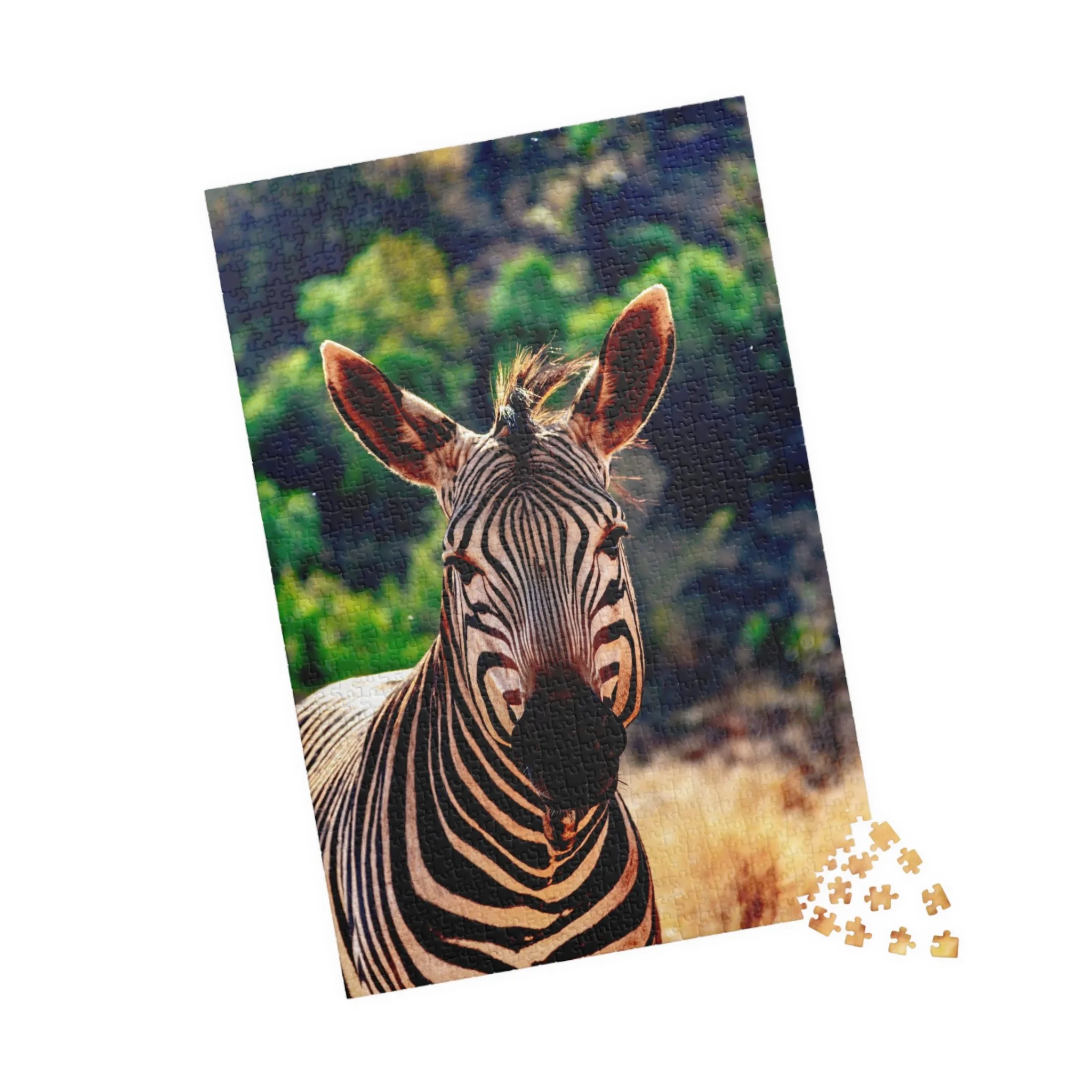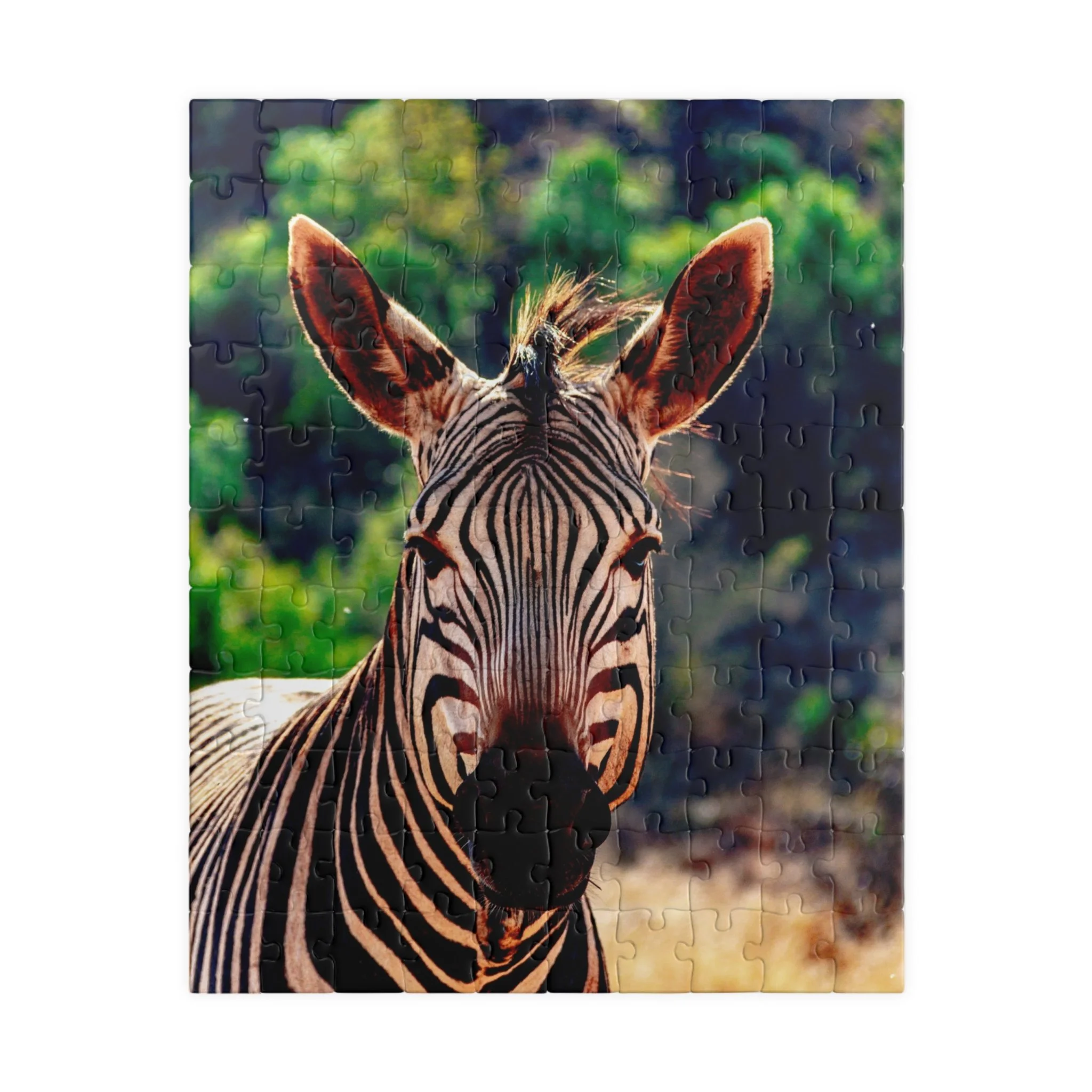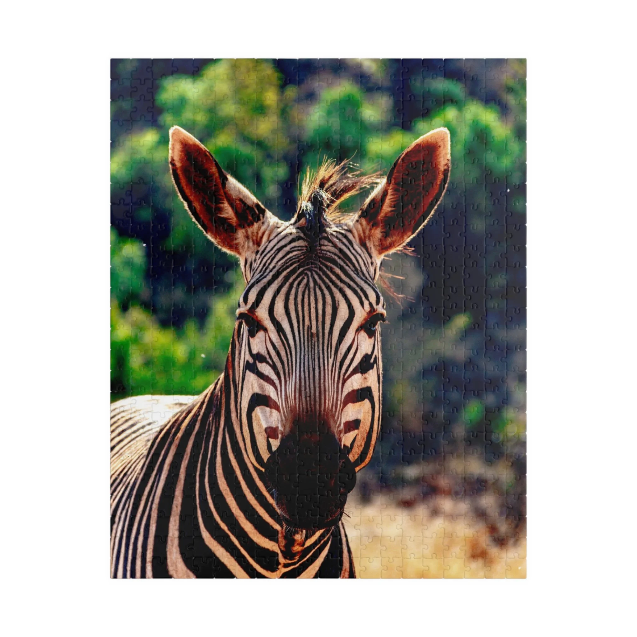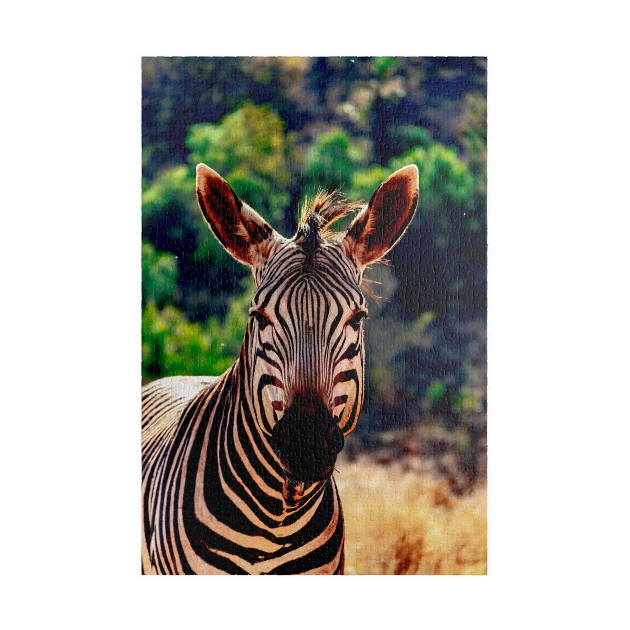 This close-up portrait of a zebra captures the striking geometry of its black and white stripes in crisp detail, while the surrounding landscape fades softly into the background. The shallow depth of field draws attention to the animal’s expression and texture, creating an intimate and powerful connection with one of Africa’s most recognizable wildlife icons.